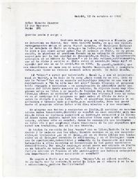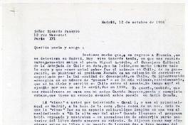 Madrid, España [a] Ricardo Paseyro, París, Francia Carta, 1966 octubre 12, [manuscrito] Alberto Baeza Flores.
