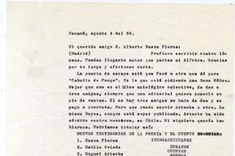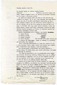 Panamá [a] Alberto Baeza Flores, Madrid, España Carta, 1966 agosto 4, [manuscrito] / Antonio de Undurraga. 1 hoja ; 32,5 x 21,5 cm. .