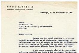 Santiago, Chile [a] Jaime Castillo Velasco Carta, 1966 noviembre 10, [manuscrito] Salvador Reyes.