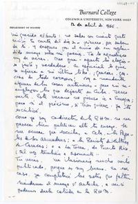 Columbia University, New York, [EE.UU.] [a] Alberto Baeza Flores Carta, 1966 abril 12, [manuscrito] Eugenio Florit.