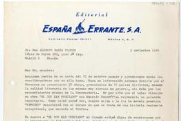 México D. F. [a] Alberto Baeza Flores, Madrid, España Carta, 1966 noviembre 3, [manuscrito] Editorial España Errante (México).