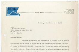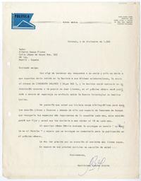 Caracas, Venezuela [a] Alberto Baeza Flores, Madrid, España Carta, 1966 diciembre 5, [manuscrito] Martiniano Bracho Sierra.