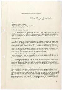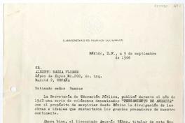 México, D. F. [a] Alberto Baeza Flores, Madrid, España Carta, 1966 septiembre 9, [manuscrito] Mauricio Magdaleno Cardona.