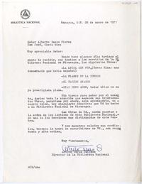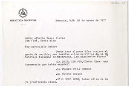 El Director de la Biblioteca Nacional de Managua, acusa recibo de sus obras "La Lucha sin fin", "La flamme et la cendre", "El caribe amargo" y "Días como años", y le informa que serán puestas a disposición de los lectores de la Biblioteca.