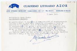 Barcelona, España [a] Alberto Baeza Flores, Madrid, España Carta, 1982 enero 7, [manuscrito] / José Jurado Morales. 1 hoja ; 22 x 16 cm. .