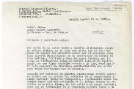 Berlin, Alemania [a] Ángel Cuadra Landrove, La Habana, Cuba Carta, 1973 agosto 26, [manuscrito] / Pascual Delgado Filardo. 1 hoja ; 27,5 x 21,5 cm. .