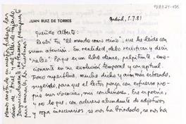 Madrid, España [a] Alberto Baeza Flores Carta, 1981 julio 5, [manuscrito] Juan Ruiz de Torres.