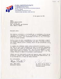 Florida, Estados Unidos [a] Alberto Baeza Flores, Madrid, España Carta, 1981 agosto 10, [manuscrito] Húber Matos y Mario Villar Roces.