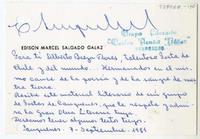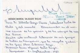 Cauquenes, Chile [a] Alberto Baeza Flores Tarjeta, 1981 septiembre 7, [manuscrito] Edison M. Salgado Galaz.