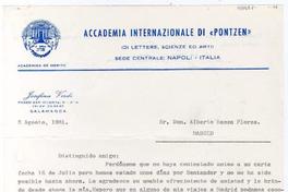 Salamanca, España [a] Alberto Baeza Flores Carta, 1981 agosto 5, [manuscrito] Josefina Verde.