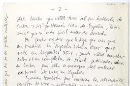 Envia una dirección en Madrid, donde puede encontrar las obras completas de Marti, publicadas en Cuba. Agradece las revistas españolas de cine y fotografía. Lo felicita por los poemas de "El tiempo pasajero", donde refleja el Paris que han compartido en el exilio.