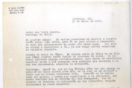 Berkeley, California [a] Pedro Lastra Carta, 21 de marzo de 1962, [manuscrito] / Raúl Silva Castro. 1 hoja ; 27,5 x 21,5 cm. .