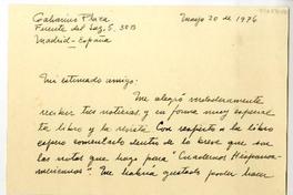 Comunica su alegría al saber de él, e informa que pronto hará una reseña de su libro.