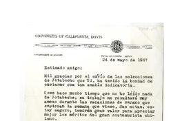 Davis, California [a] Pedro Lastra Carta, 24 de mayo de 1967, [manuscrito] Homero Castillo.