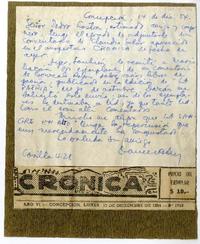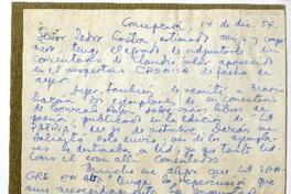 Concepción, Chile [a] Pedro Lastra Carta, 14 de diciembre de 1954, [manuscrito] Daniel Belmar.