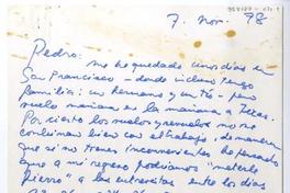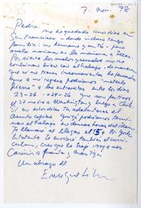 California, Estados Unidos [a] Pedro Lastra Carta, 7 de noviembre de 1978, [manuscrito] Enrique Lihn.
