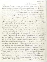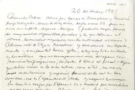 Barcelona, España [a] Pedro Lastra Carta, 26 de enero de 1981, [manuscrito] Enrique Lihn.