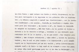 Santiago, Chile [a] Pedro Lastra Carta, 23 de agosto de 1983, [manuscrito] Enrique Lihn.