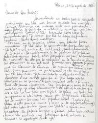 Valdivia, Chile [a] Pedro Lastra Carta, 24 de agosto de 1998, [manuscrito] / Jorge Torres Ulloa. 1 hoja ; 28 x 21,5 cm. .