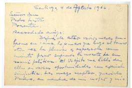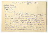 Santiago, Chile [a] Pedro Lastra Carta, 4 de agosto de 1966, [manuscrito] Hugo Laso Popa.