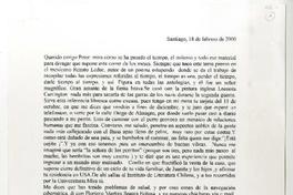 Santiago, Chile [a] Pedro Lastra Carta, 18 de febrero de 2000, [manuscrito] Eugenia Echeverría.