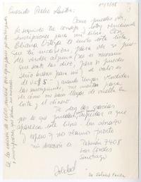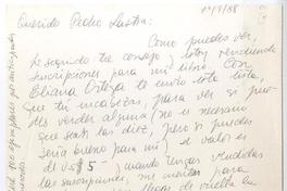 Santiago, Chile [a] Pedro Lastra Carta, 1 de septiembre 1988, [manuscrito] Soledad Fariña.