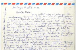Santiago, Chile [a] Pedro Lastra, Nueva York Carta, 17 de abril 1989, [manuscrito] Alberto Rubio.