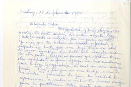 Santiago, Chile [a] Pedro Lastra, Nueva York Carta, 10 de febrero 1980, [manuscrito] Alberto Rubio.