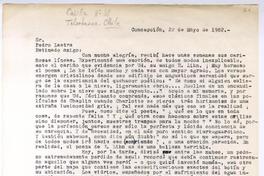 Concepción, Chile [a] Pedro Lastra, Nueva York Carta, 22 de mayo 1982, [manuscrito] Juan Pablo Riveros.