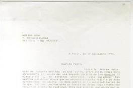 Paris, Francia [a] Pedro Lastra, Nueva York Carta, 17 de noviembre 1990, [manuscrito] Waldo Rojas.