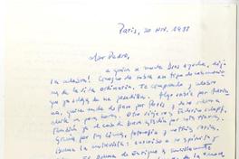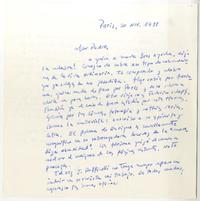 Paris, Francia [a] Pedro Lastra, Nueva York Carta, 30 de noviembre 1988, [manuscrito] Waldo Rojas.