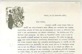 Paris, Francia [a] Pedro Lastra, Nueva York Carta, 15 de diciembre 1987, [manuscrito] Waldo Rojas.