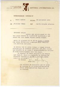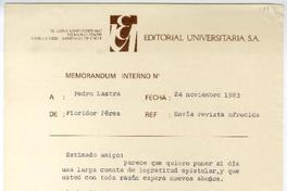 Santiago, Chile [a] Pedro Lastra, Nueva York Carta, 24 de noviembre 1983, [manuscrito] Floridor Pérez.
