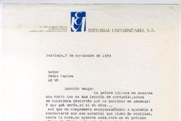 Santiago, Chile [a] Pedro Lastra, Nueva York Carta, 7 de noviembre 1983, [manuscrito] Floridor Pérez.