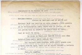 Combarbalá, Chile [a] Pedro Lastra, Nueva York Carta, 26 de febrero 1979, [manuscrito] Floridor Pérez.