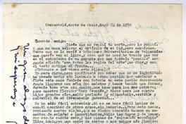 Combarbalá, Chile [a] Pedro Lastra, Nueva York Carta, 20 de mayo 1978, [manuscrito] Floridor Pérez.