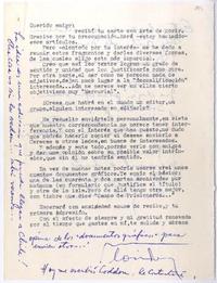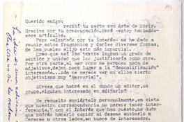 Combarbalá, Chile [a] Pedro Lastra, Nueva York Carta, 1977, [manuscrito] Floridor Pérez.