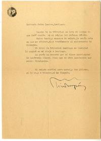 Combarbalá, Chile [a] Pedro Lastra, Nueva York Carta, 1976, [manuscrito] / Floridor Pérez. 1 hoja ; 27,5 x 21,5 cm. .