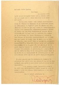 Combarbalá, Chile [a] Pedro Lastra, Nueva York Carta, 1975?, [manuscrito] / Floridor Pérez. 1 hoja ; 27,5 x 18,5 cm. .