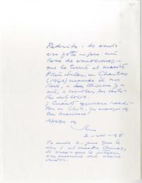 South Carolina [a] Pedro Lastra, Nueva York Carta, 2 de agosto 1998, [manuscrito] Juan Loveluck.