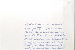 Comunica que le envía fotografía del maestro Mariano Picón-Salas de 1960, cuando estuvieron en Francia. Comenta su deseo de reeditar en Chile los ensayos del Maestro.