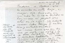 Buenos Aires, Argentina [a] Pedro Lastra, Nueva York Carta, 2 de febrero 1997, [manuscrito] Juan Loveluck.