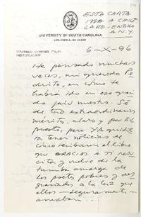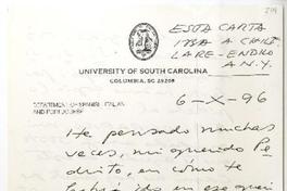 South Carolina [a] Pedro Lastra, Nueva York Carta, 6 de octubre 1996, [manuscrito] Juan Loveluck.