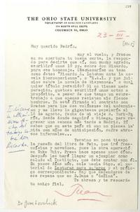 Ohio [a] Pedro Lastra Carta, 23 marzo de 1965, [manuscrito] Juan Loveluck.