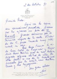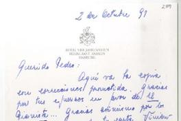 Hamburg [a] Pedro Lastra Carta, 2 de octubre 1991, [manuscrito] Luis Domínguez.