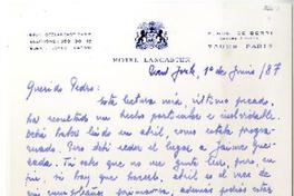 Nueva York [a] Pedro Lastra Carta, 1 de junio 1987, [manuscrito] Luis Domínguez.