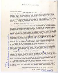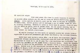 Santiago, Chile [a] Pedro Lastra Carta, 10 de mayo 1985, [manuscrito] Antonio Doddis.