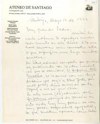 Informa que le envió con su hijo, el libro "El infierno del paraíso". Además, le comenta que dejó la presidencia de Ateneo y que está trabajando con Valjalo en los "Diez años de poesía chilena".