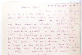 Buenos Aires, Argentina [a] Pedro Lastra Carta, 31 de julio 1967, [manuscrito] Margarita Aguirre.