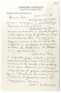 California [a] Pedro Lastra Carta, 29 de junio 1978, [manuscrito] / Fernando Alegría. 1 hoja ; 21,5 x 14 cm. .